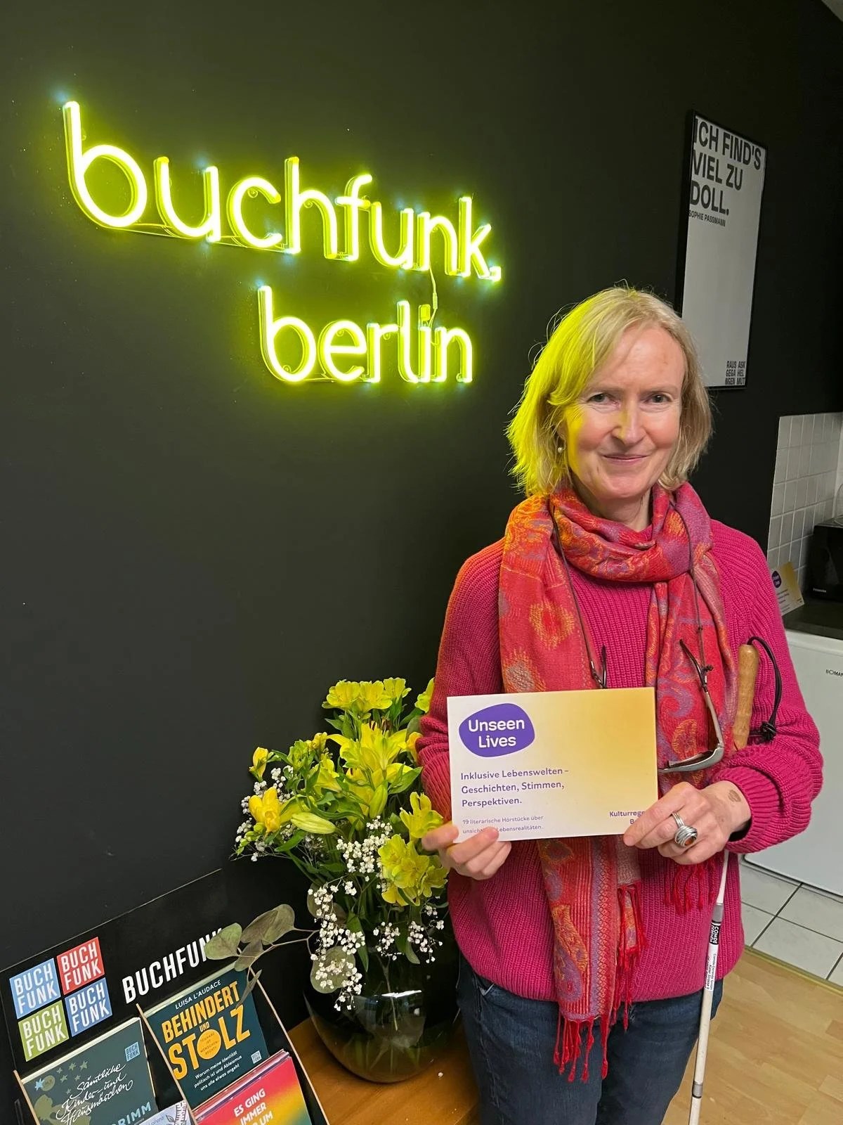 Mit Anfang 20 bekommt sie die Diagnose einer fortschreitenden Netzhauterkrankung (Retinopathia pigmentosa/Tunnelblick). Bis 2013 arbeitet sie als Verwaltungsbeamtin in den Bereichen Schule, Kultur und Soziales. Heute ist sie mit einem Sehrest von circa 3° erblindet.
